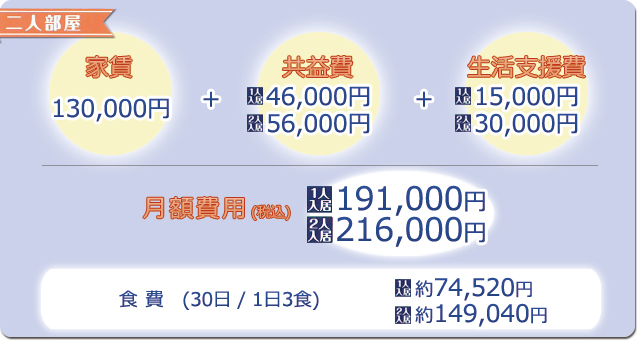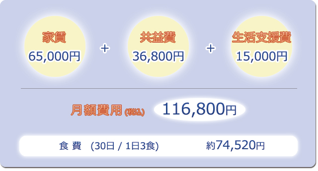 ●共用施設/共用設備:食堂兼談話室、キッチン、機械浴室、緊急通報設備、トイレ